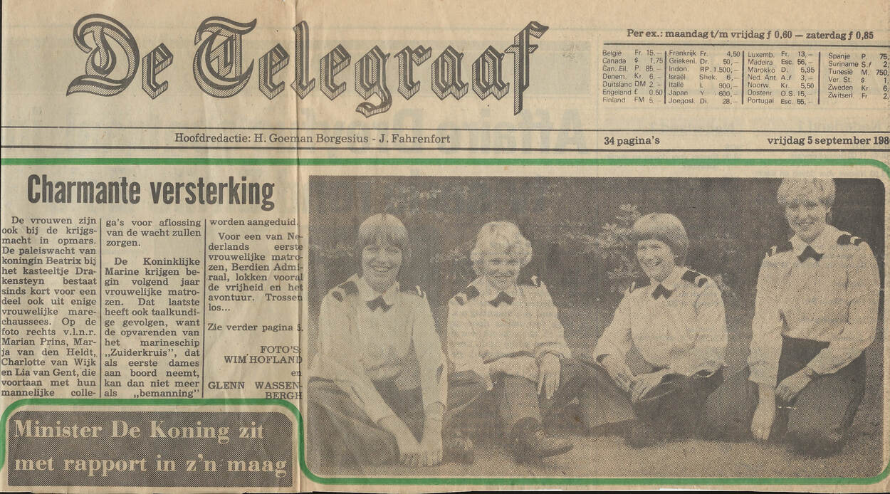 In de volgende Defensiekrant het verhaal van Elly Piek. Zij was begin jaren ’80 deelnemer aan het Zuiderkruisproject en daarmee één van de eerste vrouwen de gingen varen bij de Koninklijke Marine.