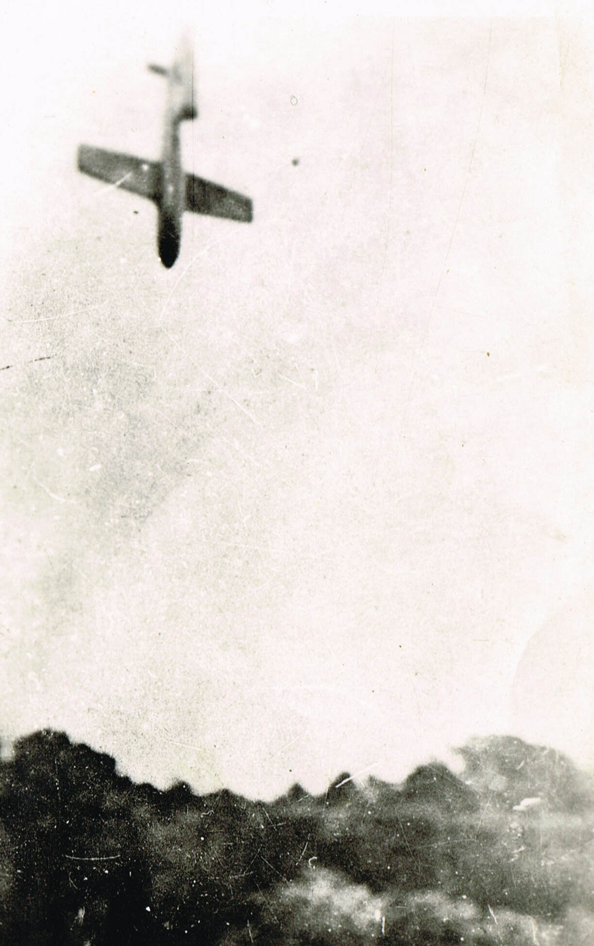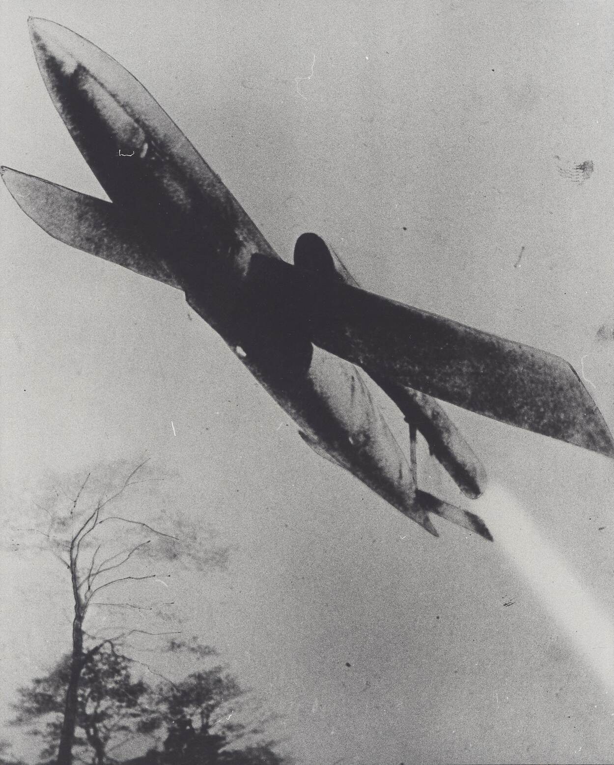 De laatste seconden van een Duitse V1 voor hij bij inslag explodeert. Opname uit 1944 in Luik (foto: Lou Vis).