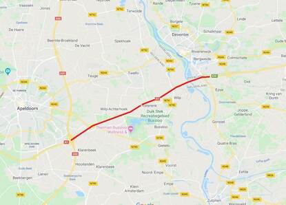 Een deel van de snelweg A1 wordt afgesloten (foto: Google Maps).