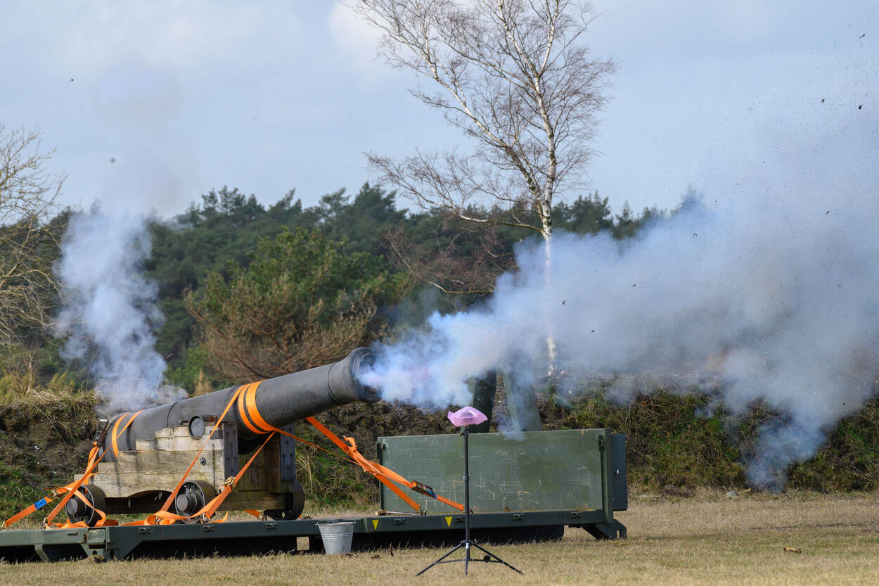De proefschoten zijn nodig om te onderzoeken hoe groot de lading zwart buskruit mag zijn. “Als je er mee schiet, mag je het kanon niet te zwaar belasten. Het geluidsniveau moet ook niet te hoog zijn”, legt Klaver uit. “Er wordt geen kogel afgeschoten. Voor de lading zit een prop die de loop afsluit. Als je dat niet doet zie je tijdens het afschieten alleen een vlam, maar hoor je geen knal.”