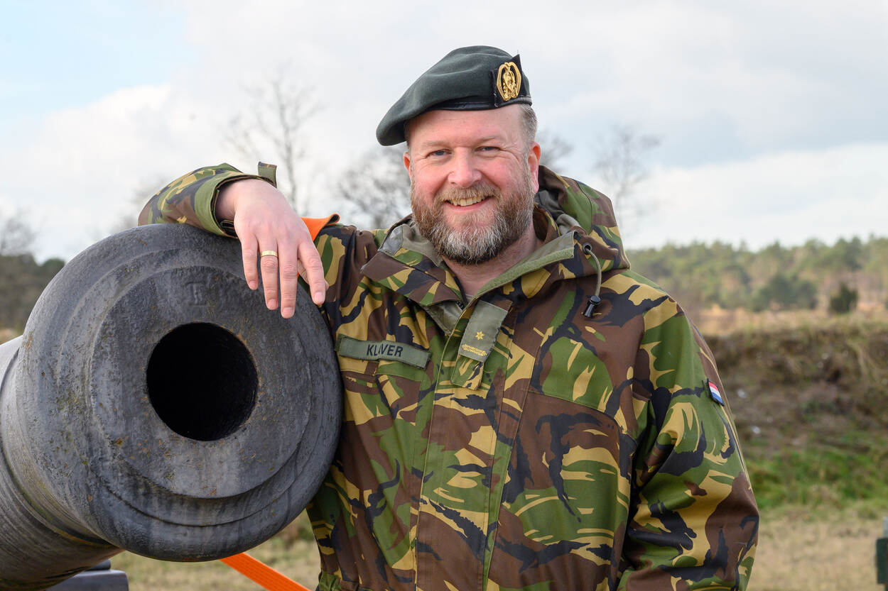 Majoor Paul Klaver bij de oude vuurmond.