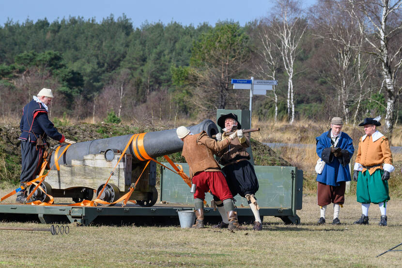 Afgelopen donderdag werd met nog zwaardere ladingen geschoten, om de maximale toelaatbare belasting vast te stellen. Veiligheid voor alles. Niet alleen voor de bezoekers van evenementen, maar zeker ook voor de leden van het Exercitiepeloton Bourtange, die het geschut gaan bedienen. Gestoken in historische kledij troffen zij geheel in stijl de voorbereidingen voor elk schot, maar het waren echter de medewerkers van Klaver die vuurden. Ze keken van een afstandje gelaten toe in de wetenschap dat hun beurt nog komt.