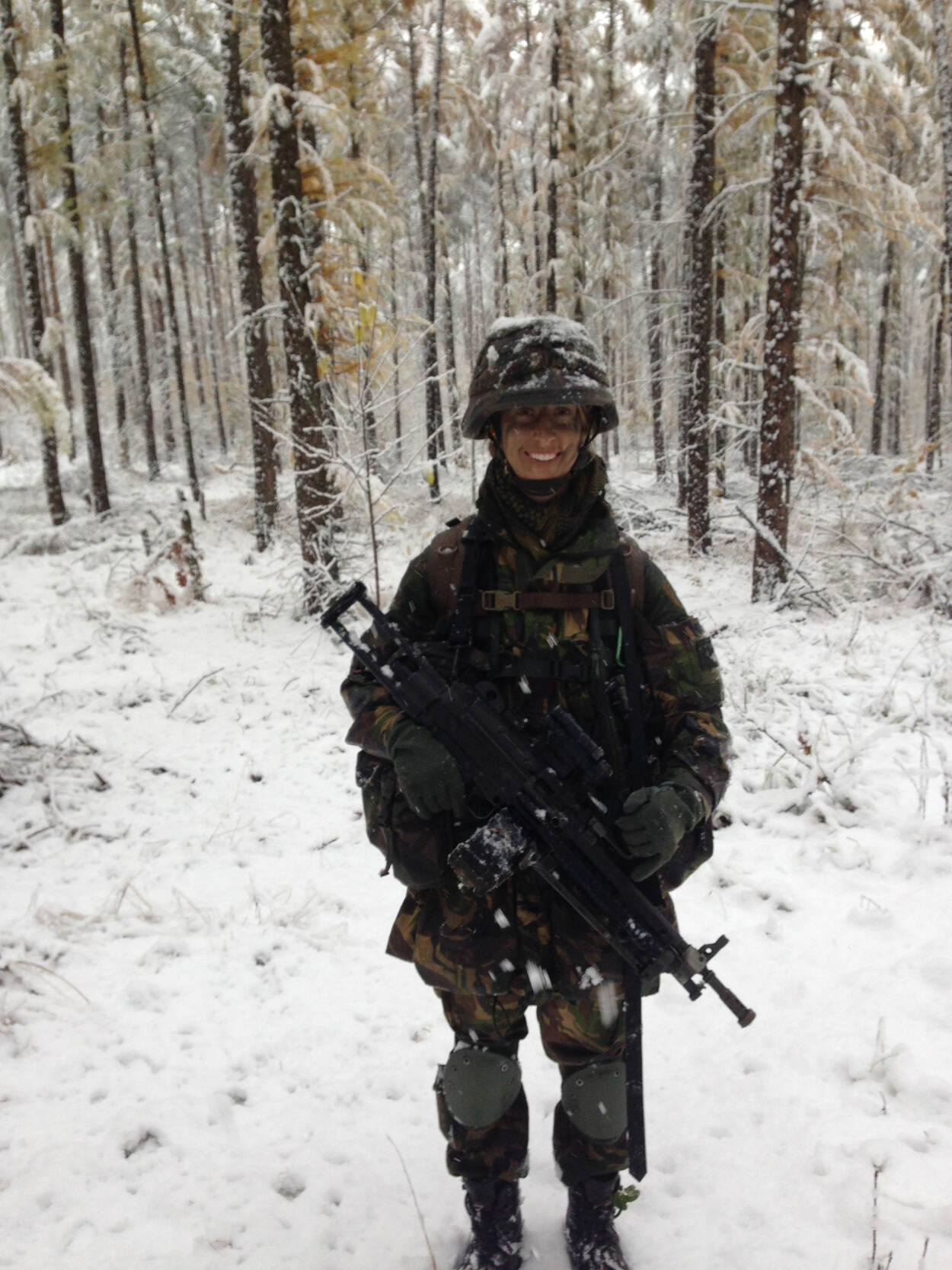 Toch ging ze eerst aan de slag als tandartsassistentie. Maar in 2016 kon ze de drang niet langer weerstaan. Esmée meldde zich in Assen voor de ‘Manoeuvre Functie Opleiding’. Ofwel: 26 weken afzien om infanterist te worden. Een opleiding waarbij doorgaans de helft van de cursisten de eindstreep niet haalt. Esmée liep het risico om uiteindelijk met lege handen te staan. Dat bleek een goede motivatie op momenten dat ze het zwaar had.