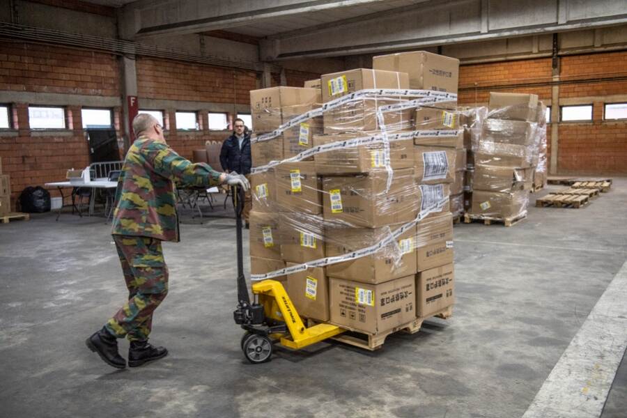 Defensie verzorgt met de zogenoemde Interventiedienst het transport van patiënten tussen ziekenhuizen in Brussel en Vlaams-Brabant. Hiervoor wordt extra capaciteit ingezet. Militairen helpen ook bij de opslag en verdeling van de 5 miljoen mondkapjes die vorig week op de luchthaven van Luik aankwamen.