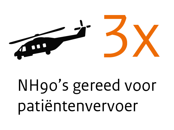 3 NH90’s staan gereed voor patiëntenvervoer. 2 daarvan hebben standaard een Medical Module aan boord. Waarom dan 3 kisten vrijspelen? Worstcasescenario is dat 1 van de heli’s in onderhoud is en de 2e niet start. Dan is er altijd een 3e kist die de ambulancetaak kan vervullen.