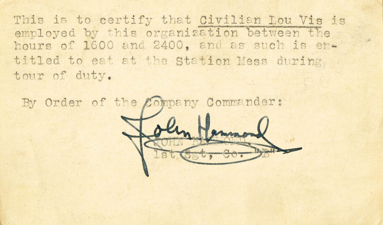 Amerikaanse verklaring dat Lou Vis in militaire eetzalen mag eten.