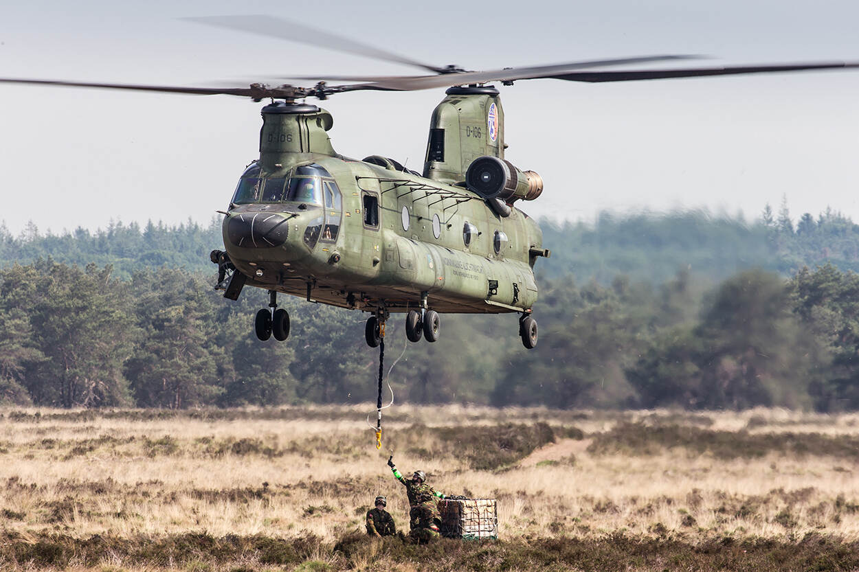 Op 3 juni vond op diezelfde Edesche Heide een slingery oefening plaats. Daarbij was een Chinook van 298 squadron betrokken en 11BEVO van de luchtmobiele brigade. Foto: Marco Ferrageau.