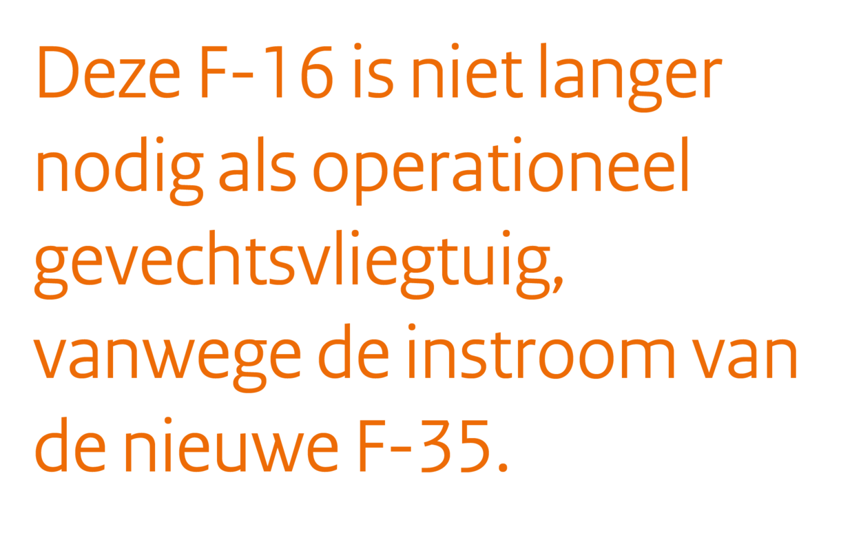 Leuk detail is dat KMA-commandant kolonel-vlieger Gerbe Verhaaf zelf ook op dit toestel heeft gevlogen. Hoeveel vluchten het precies waren weet hij niet meer, maar 1 ding wel: ‘Vliegen met een F-16 is het mooiste dat er is.”