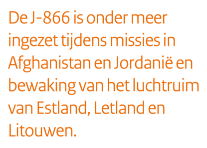 Na de laatste vlucht in januari vorig jaar is de 866 ontmanteld op vliegbasis Volkel en gereed gemaakt als ‘museumstuk’. Eerst zijn alle nog bruikbare onderdelen van de kist gehaald, die na een inspectie de kast ingaan als reservedelen. Dan wordt alles wat niet nodig is verwijderd, zodat er een soort ‘lege huls’ ontstaat. Normaal gesproken gaat het restant de shredder in, maar de J-866 staat inmiddels op een sokkel, gebroederlijk tegenover een Leopard-1V.