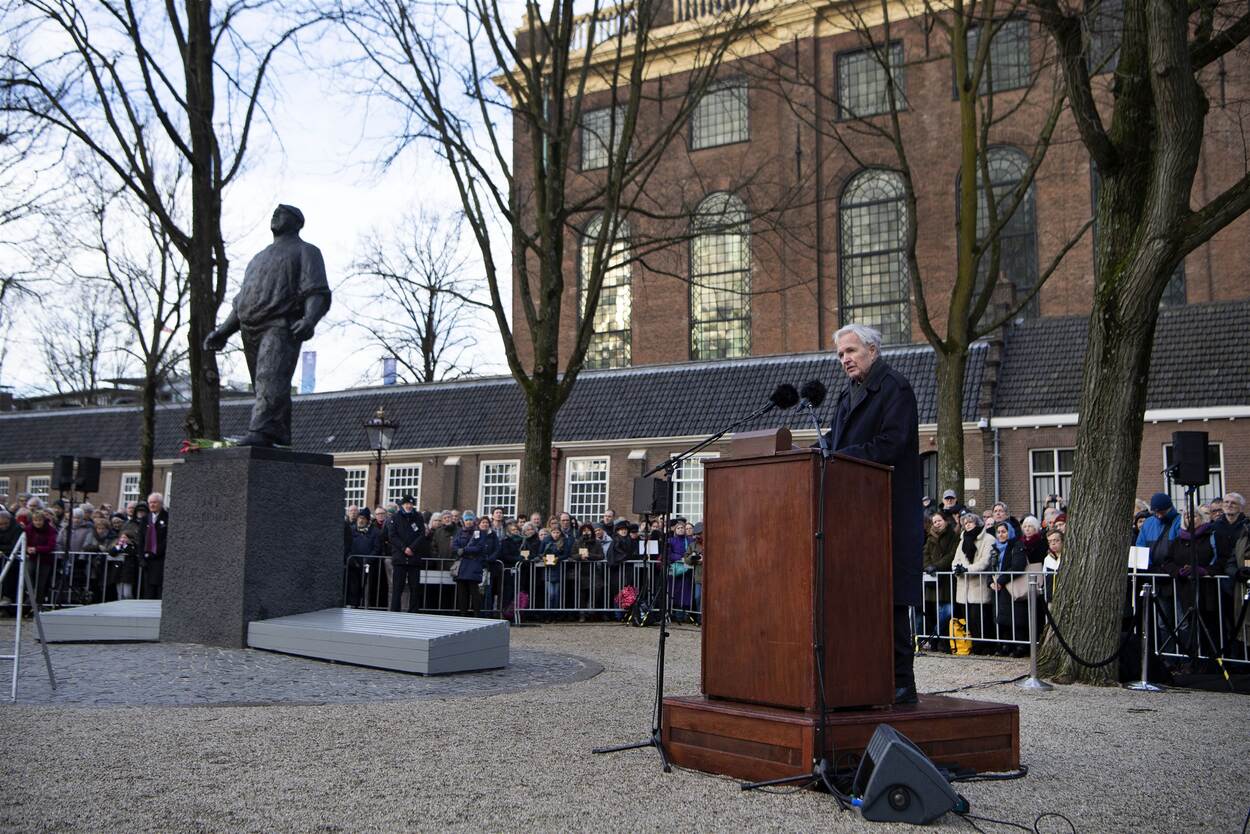 Jan Terlouw spreekt tijdens de 79e herdenking van de Februaristaking. Foto: Olaf Kraak.