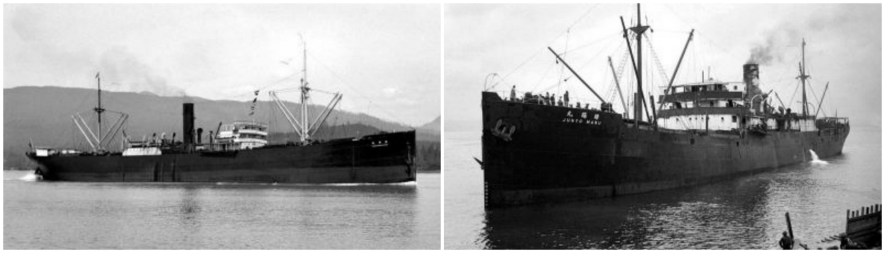 Op foto 1 de Tamahoku Maru en op foto 2 de Junyo Maru.