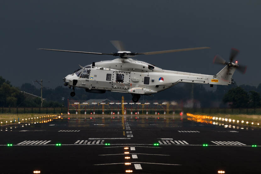 Een onbekende fotograaf zette deze prachtig uitgelichte NH90 op de gevoelige plaat. Door de harde lijnen lijkt het net alsof de heli van karton is gevouwen. Niet is minder waar natuurlijk. De machine werd gefotografeerd boven de startbaan van haar thuisbasis Maritiem Vliegkamp De Kooy in Den Helder. De fotograaf mag zich uiteraard melden voor de naamsvermelding.