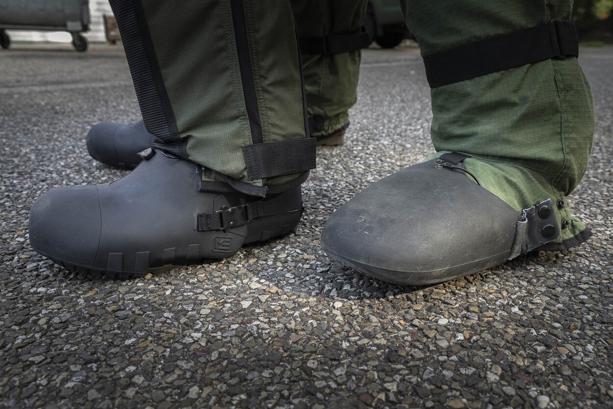 Bijkomend voordeel is trouwens ventilatie. Niet te verwarren met koeling. “Het is geen airco, maar naast de helm ademt nu ook het pak beter”, vertelt EOD’er majoor Werner die betrokken was bij de aanschaf. “Je gaat namelijk enorm zweten en het wordt serieus warm. Er is zelfs een drinkprotocol voor de ruimers om ervoor te zorgen dat ze vooraf genoeg vocht binnen krijgen.”