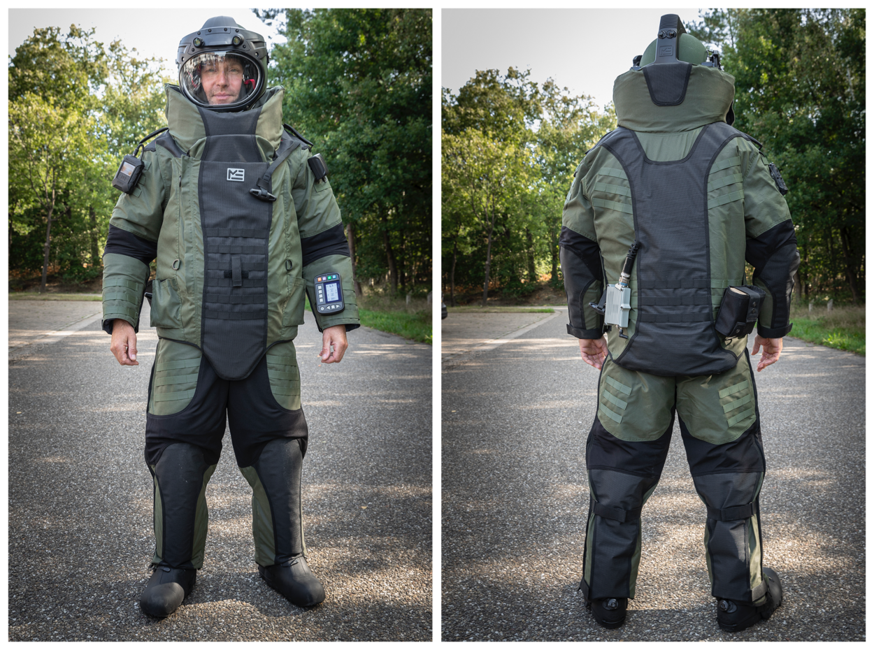 De Explosieven Opruimingsdienst heeft nieuwe bompakken. De eerste exemplaren van in totaal 53 stuks zijn inmiddels afgeleverd. De ruimers van zowel de grondgebonden als maritieme EOD gaan ermee leren werken. Met 50.000 euro per stuk zijn de pakken een aardige investering, maar wat  kan ‘ie nu beter dan z’n voorganger?