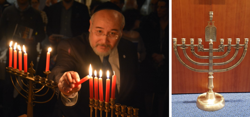 Kaarsen op de menora, een zevenarmige kandelaar, worden in aanloop naar Chanoeka dagelijks aangestoken.