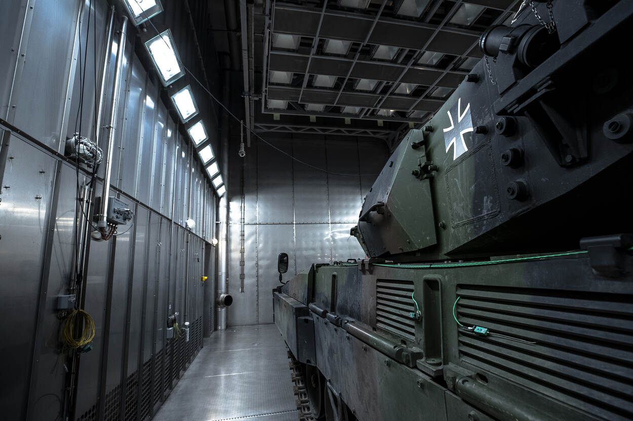 Een gloednieuwe, Duitse Leopard 2A7V is onlangs in de Nederlandse ‘klimaatkamer’ van Defensie getest onder verschillende klimatologische omstandigheden. Het Duitse Bundesamt für Ausrüstung und Informationstechnik der Bundeswehr (BAAINBw) deed dit verzoek om te kijken hoe het materieel stand houdt in bijvoorbeeld hartje zomer of een barre winter.