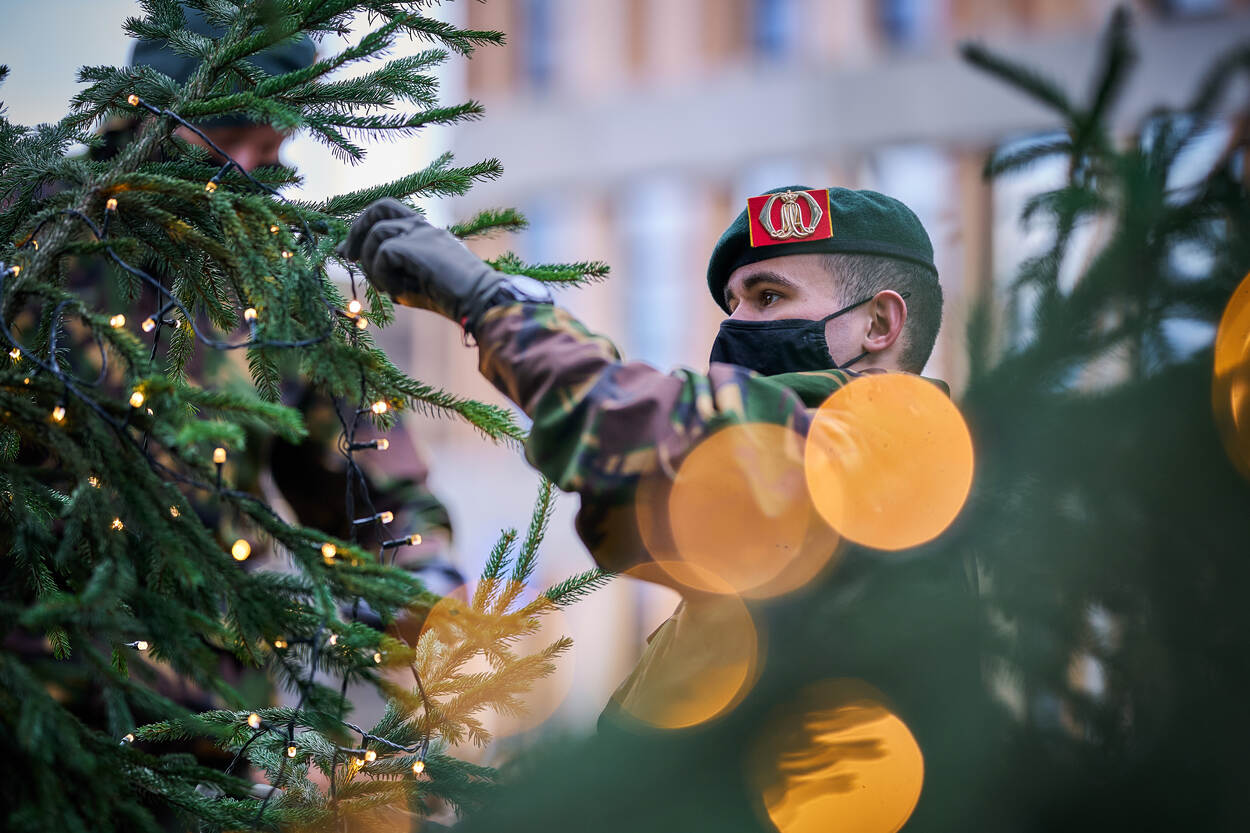 10 cadetten van de Koninklijke Militaire Academie in Breda hebben vandaag een 12 meter hoge kerstboom opgetuigd voor het Amphia Ziekenhuis. Met de actie willen ze patiënten, hun naasten en zorgmedewerkers een hart onder de riem steken in deze donkere dagen. Zeker nu de feestdagen anders worden gevierd dan normaal.
