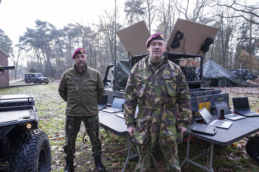 Ook voor deze uitgebreide proef leek COVID-19 weer eens roet in het eten te gooien. “We zouden nu als onderdeel van de Division Schnelle Kräfte op het Duitse oefenterrein Wildflecken zijn voor een grote oefening”, verontschuldigt stafofficier Plan Operations majoor Ron Muijlkens zich welhaast. “Maar we hebben ons snel aangepast.” In plaats van in Duitsland was de staf 11 Luchtmobiel coronaproof, daarom konden we hier op de Oranjekazerne in Schaarsbergen terecht.