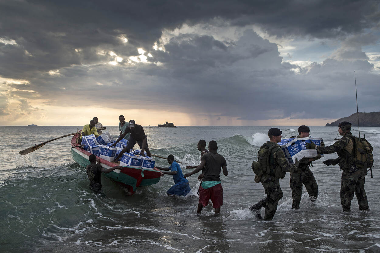“Samen met een cameraman en redacteur was ik in het najaar van 2016 bij een drieweekse oefening van het Korps Mariniers in de Verenigde Staten. Net voor we terug zouden vliegen bereikte ons het bericht dat er een enorme orkaan op Haïti afstevende. Met de hele club zijn we direct vanuit de VS die kant op gevlogen. Nederland stuurde in de tussentijd vanaf Curaçao twee marineschepen, Zr. Ms. Holland en Zr. Ms. Pelikaan, naar het getroffen gebied.