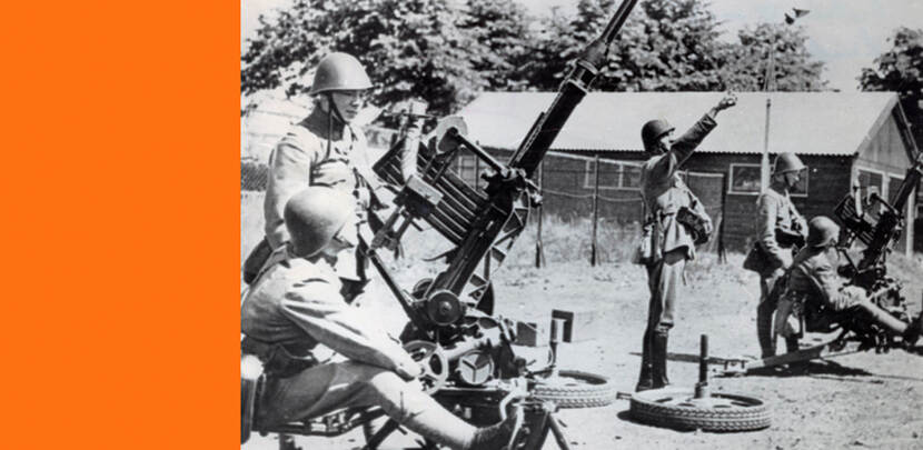 Op de foto: richtoefeningen bij de Vrijwillige Luchtafweer met de Oerlikon 2 centimeter tegen luchtdoelen nr. 11 tijdens de mobilisatie 1939-1940 (NIMH).