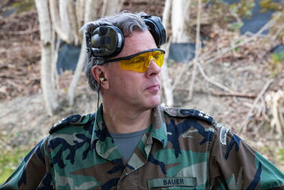 De verjaardag van Bauer en de uitnodiging dateren nog van vorig jaar, maar de CDS kwam deze week zijn cadeau verzilveren bij zijn afscheidstour van de krijgsmacht. Tijdens zijn bezoek aan de thuisbasis van 43 op de Johannes Postkazerne in Havelte crosste de hoogste militair met de krachtpatser van de landmacht over het oefenterrein.