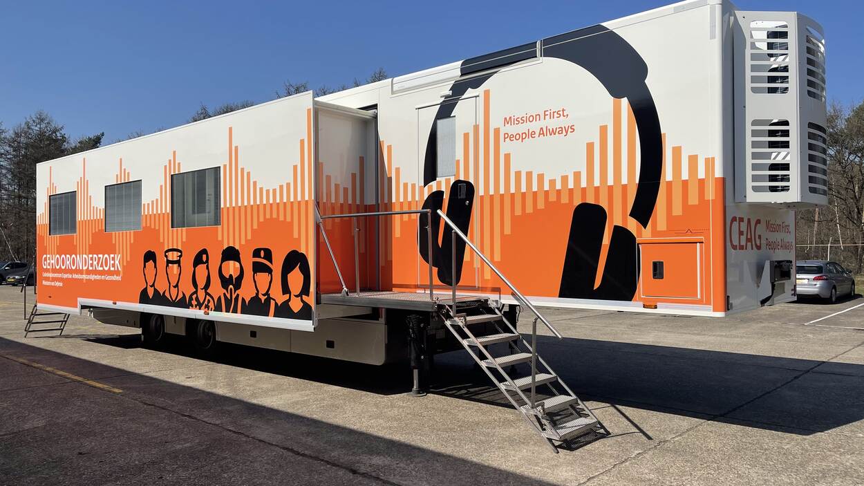 De spiksplinternieuwe, uitschuifbare gehoortestwagens van 13 bij 3,5 meter zijn voorzien van vier audiocabines en audiomaten om onderzoeken uit te voeren. De trailer is verplaatsbaar en zodoende op elke defensielocatie neer te zetten. Dat maakt ze zeker bij opleidingscentra of operationele eenheden extra waardevol, omdat daar grote groepen militairen tegelijkertijd moeten worden onderzocht.
