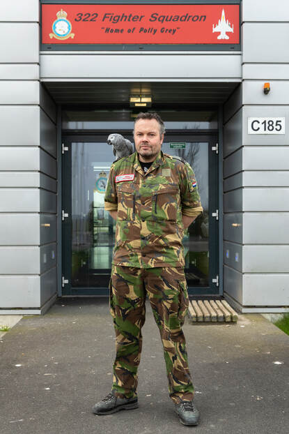 Ze werd meegenomen uit de London Zoo, vloog mee met een Starfighter, kreeg de rang van sergeant-majoor en de nu vijfde Polly Grey legde onlangs zelfs eieren. Sinds jaar en dag is deze grijze roodstaartpapegaai van 322 Squadron dé enige levende luchtmachtmascotte van Defensie.