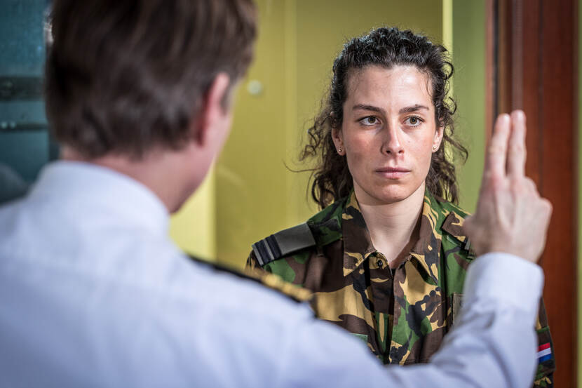 Sergeant Sjoerd Hilckmann nam deze intrigerende foto voor het online symposium ‘Wendbaar hoger onderwijs’, dat op maandag 17 mei aanstaande wordt gehouden. Het Instituut Defensie Leergangen vroeg de fotograaf mee te denken over hoe het onderwerp civiel-militaire samenwerking van de toekomst uitgebeeld kan worden. In samenwerking met de afdeling Crossmedia van het Mediacentrum Defensie werd dit het resultaat.