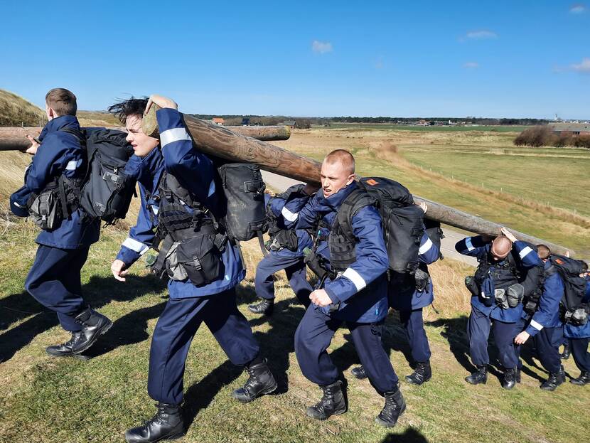 Korporaal Andrew Rep is met een net opgekomen klas op Texel voor de Eerste Maritieme Militaire Vorming. Hier vinden onder meer het introductiebivak en grensverleggende oefeningen plaats. Trefwoorden hierbij: verantwoordelijkheid nemen, initiatief tonen, samenwerken en stressbestendigheid. “Inmiddels hebben velen de nodige obstakels lichamelijk en geestelijk overwonnen”, aldus Rep.