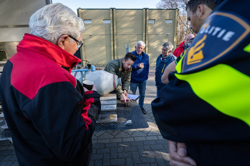 Majoor Peter geeft uitleg over het explosief aan de vrijwilligers van Sportvereniging Epse.