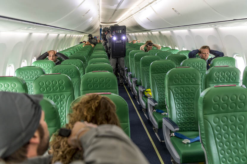 “HANDEN OP JE HOOFD, HANDEN OP JE HOOFD!” Gehoorzaam schieten tientallen handjes de lucht in. “EN HOUD ZE DAAR”, brult een operator in het oor, als een arm langzaam naar beneden zakt. Mariniers van de Netherlands Maritime Special Operations Force (NLMARSOF) stormden een paar seconden daarvoor met veel lawaai een vliegtuig van Transavia binnen en overmeesterden vliegensvlug twee kapers. Rotterdam The Hague Airport (RTHA) is weer een beetje veiliger. Nou ja, bij wijze van spreken.