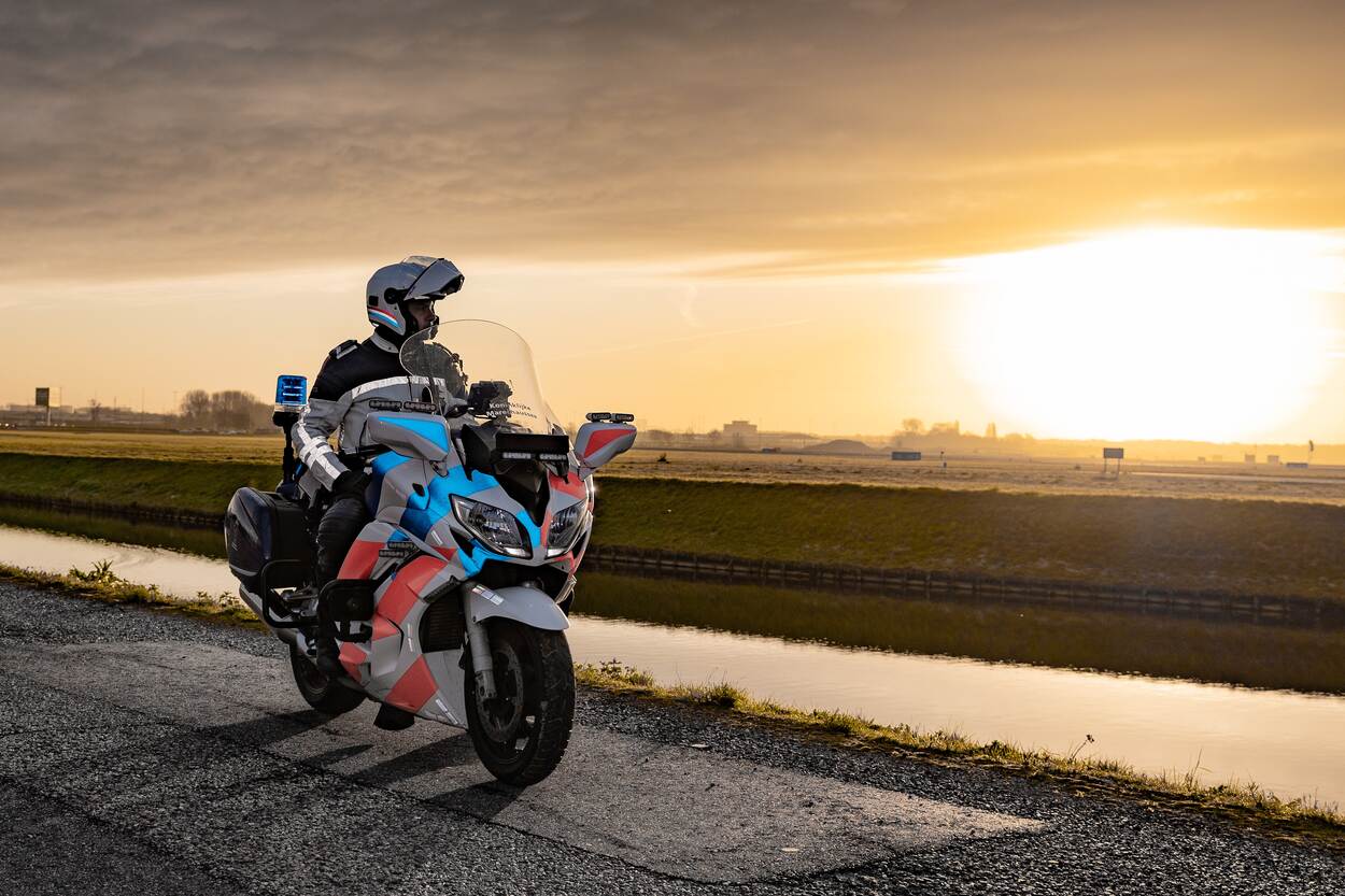 De marechaussee op de motor is een maatje van mij. Ik heb ‘m na een dienst aan zijn jasje getrokken en gevraagd of hij model wilde staan.