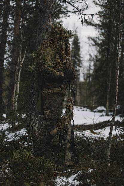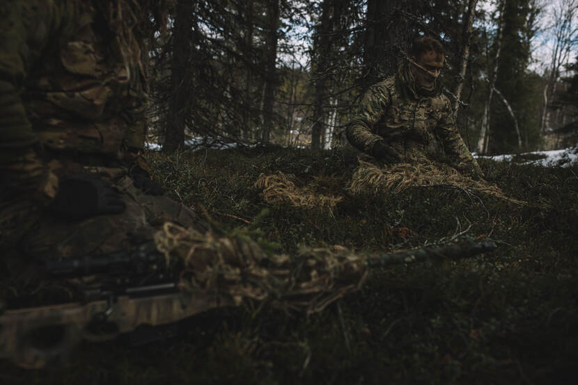 Voor snipers sergeanten Wiebe en Mitch is de oefening een buitenkans. Wiebe: “We trainen veel, vooral in Nederland. Maar daar treedt ook gewenning op. Je kent de oefengebieden, hoe het terrein en landschap eruitzien en weet hoe je je daarop moet aanpassen. Zweden biedt een compleet andere omgeving.”