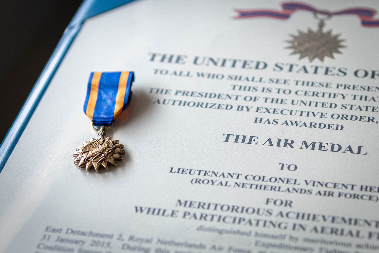 De Air Medal wordt uitgereikt vanwege de vluchten die Nederland uitvoerde, onder leiding van de Amerikaans geleide coalitie tijdens Operation Inherent Resolve.