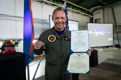 “Omdat de Amerikanen ons hiermee willen bedanken voor de uitzonderlijke bijdrage die we hebben geleverd in de strijd tegen ISIS in Irak en Oost-Syrië. Het gaat om vluchten die we onder leiding van de Amerikaans geleide coalitie hebben uitgevoerd tijdens Operation Inherent Resolve. 87 van onze vliegers hebben in totaal 15.000 uren gemaakt, verspreid over drieduizend operationele vluchten (sorties).”