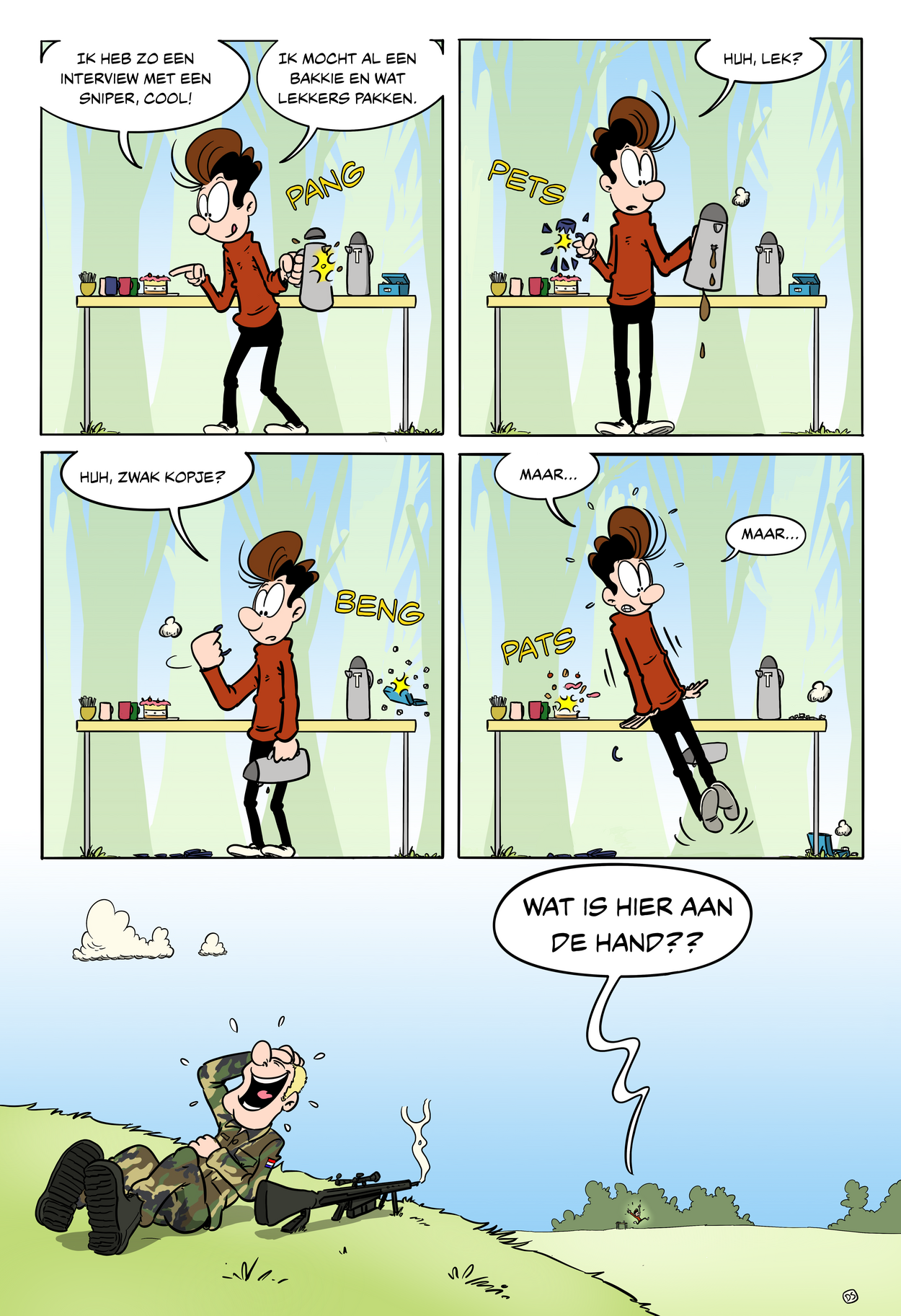 De Defensiekrant volgt de belevenissen van de ietwat onhandige en tikkeltje domme medewerker Roy. Zijn ervaringen bij de krijgsmacht worden iedere twee weken in deze strip verteld.