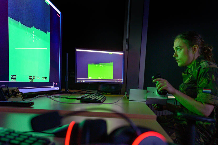 Sta je dan, met een mortier in je hand. Gedwee glijdt de 81 mm in de buis, waarna er op de drie 4K-beelschermen stofwolken verschijnen en de grond onder de voeten trilt. Een tijdje is het stil, maar dan klinkt er een luide knal. Een inslag! Nee, niet op een oefenterrein of in een missiegebied, maar allemaal vanuit de Generaal van Steveninckkazerne in Oirschot.