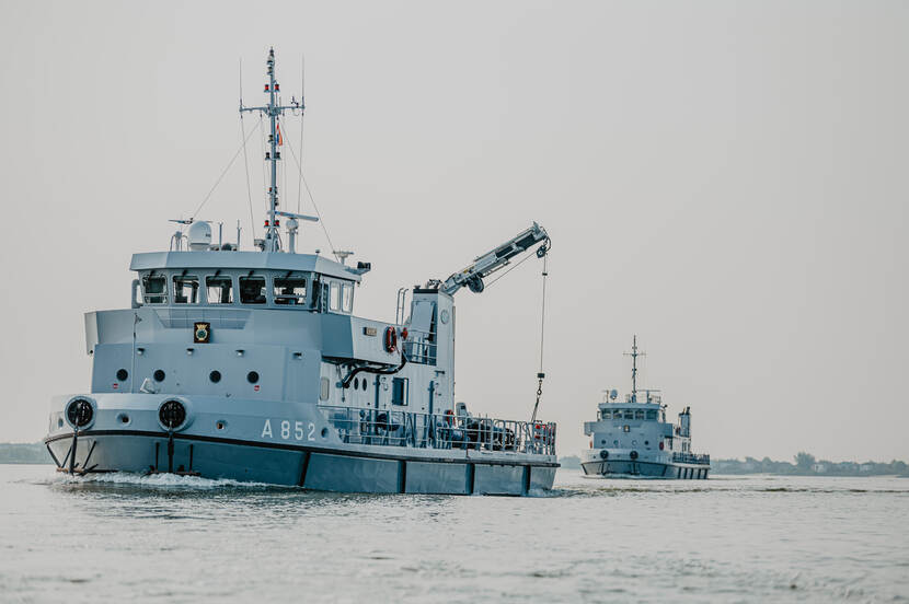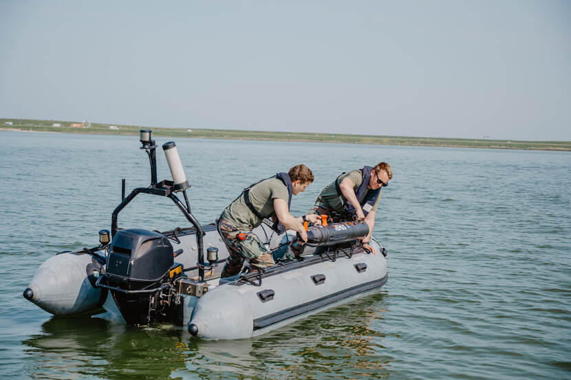 Het was de bedoeling dat ook de gloednieuwe Expeditionary Survey boot ingezet zou worden, maar daar was het nog te vroeg voor. Pouw legt uit: “De boot is nog vrij nieuw. Tests liepen uit, de bemanning moet worden opgeleid en de boot was technisch nog niet helemaal in orde. Helaas werd ie daarom nog niet vrijgegeven.”