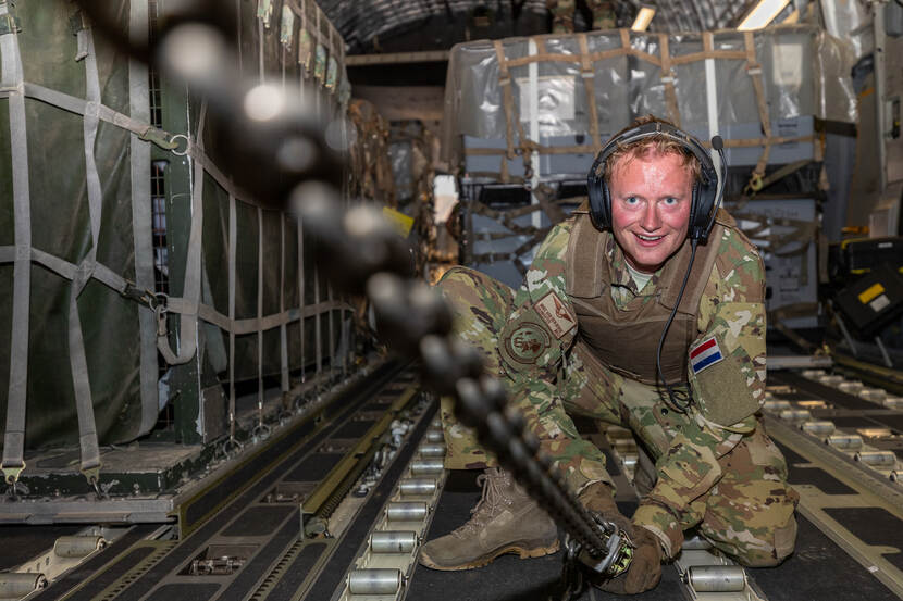 Sergeant-majoor Martijn van het Command and Control Squadron van de HAW heeft het vooraf helemaal uitgedacht. Hij puzzelt continu aan het vluchtschema; samen met aerial port draait hij een beladingsplan in elkaar. Van den Berge kijkt in de kist of het plan geoptimalisseerd moet worden.