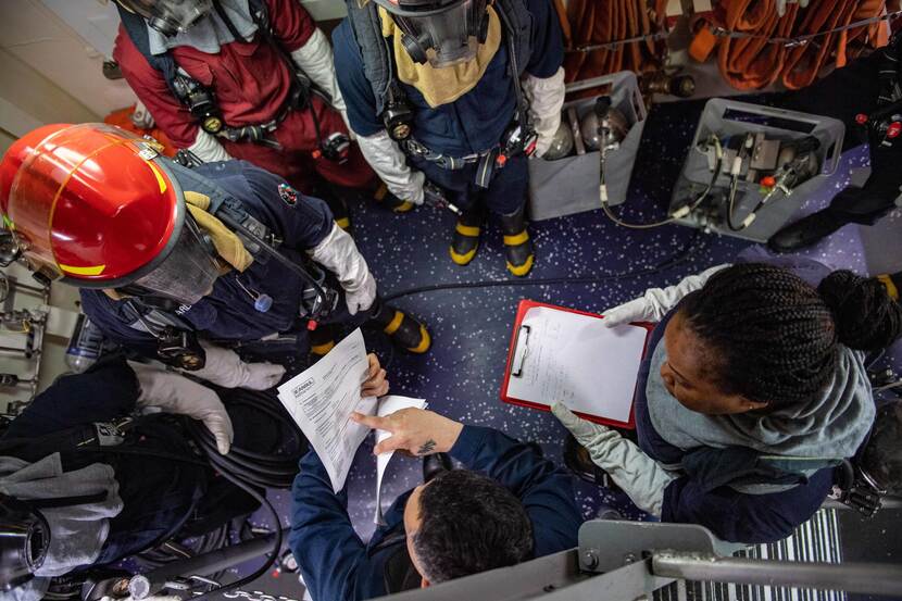 De bemanning van het amfibisch aanvalsschip USS America hield onlangs een NBCD-oefening. Het vlaggenschip van de Amphibious Ready Group bevindt zich momenteel in de Indo-Pacific, waar met geallieerde en bevriende naties wordt getraind. Samen met 31st Marine Expeditionary Unit maakt de America deel uit van de machtige 7th Fleet. Voor de plaat-met–niet-alledaags-standpunt tekent Specialist 3rd Class Jonathan D. Berlier.