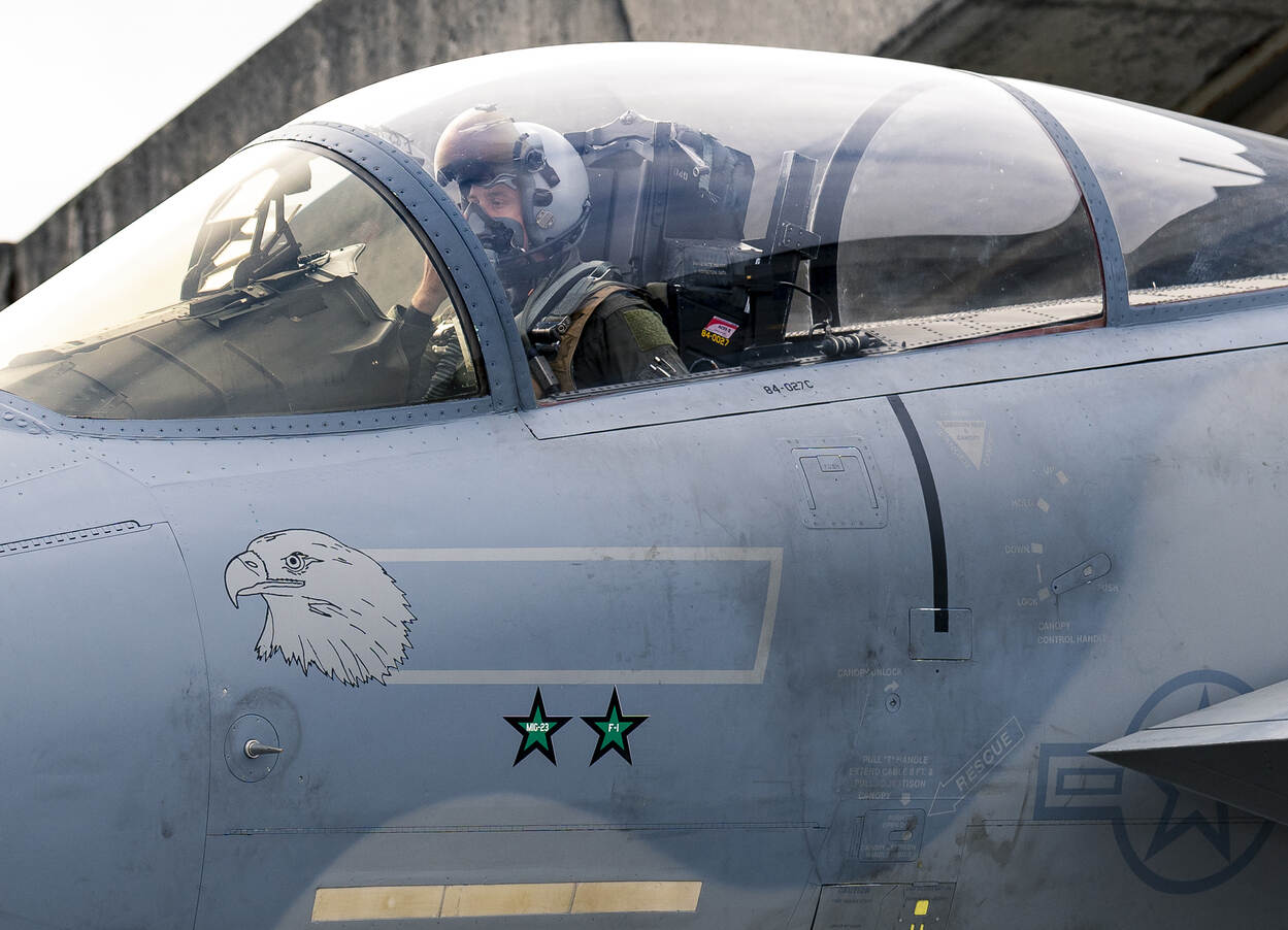 De Amerikanen maakten videobeelden van de oefenvluchten van hun F-15's op IJsland. In de video's is te zien dat het toestel met het nummer 84-027 een opvallende markering heeft. Aan de linkerkant van het toestel vallen onder de cockpit twee groene sterren op. Dat betekent dat het toestel tijdens een conflict een ander vliegtuig heeft neergeschoten. In dit geval onderschepte kapitein Ben 'Coma' Powell op 27 januari 1991 met de 84-027 en een andere F-15 een patrouillevlucht in het oosten van Irak, tijdens operatie Desert Storm. Tijdens deze missie onderschepten beide Eagles vier Iraakse vliegtuigen die wilden vluchten naar Iran. Powell slaagde er in om met raketten een Iraakse Mig-23 en Mirage F-1 neer te halen. ZIjn collega schoot twee MiG-23's neer. Sinds die tijd is 84-027 getooid met twee groene sterren.