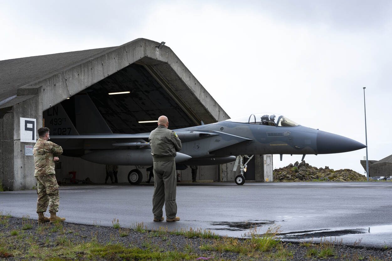 De militaire vertaling is logisch wanneer je de kaart van IJsland en omgeving bekijkt. Alle schepen en vliegtuigen die van Rusland naar het open gedeelte van de Atlantische Oceaan willen, moeten tussen Groenland en Schotland varen of vliegen. En halverwege, heel strategisch, ligt IJsland met de vroegere Amerikaanse vliegbasis Keflavik. Sinds het vertrek van Uncle Sam in 2006 tegenwoordig een IJslandse basis en sinds vorige week het tijdelijke 'thuis' voor het kwartet F-15's.