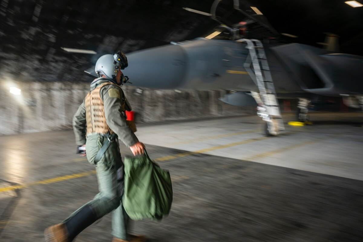 Scramble! Vlieger 'Talon' rent bij een test naar zijn F-15 om zo snel mogelijk te starten.