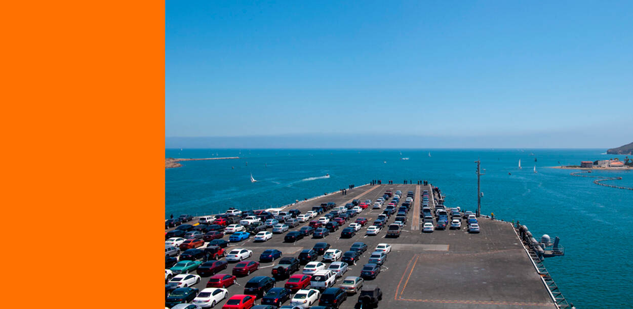 Het betekent dat ook drieduizend opvarenden en hun gezinnen (tijdelijk) zo’n 1.800 kilometer noordelijk gaan wonen. Dat leidde tot de fraaie foto bij dit bericht. Er stonden nu geen vliegtuigen op het dek, maar de auto’s en andere persoonlijke eigendommen van het vlootpersoneel.