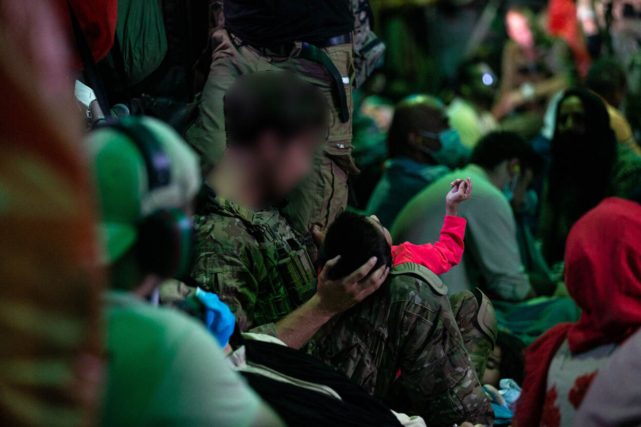 "Als dit je niet raakt, ben je een leugenaar", zegt squadleader van NLMARSOF Rex. Zijn achtkoppige club maakt deel uit van de special forces in de operatie. Militairen van de Brigade Speciale Beveiligingsopdrachten (BSB) en het Korps Commandotroepen (KCT) vangen in Kabul onder andere uitgeputte mensen op. Ook zorgen ze voor de veiligheid ter plaatse en controleren gegevens en dergelijke. Onder hun geleide schuifelt een lang lint van 129 evacués naar het vliegtuig. Daar vangen de mannen van NLMARSOF hen op.