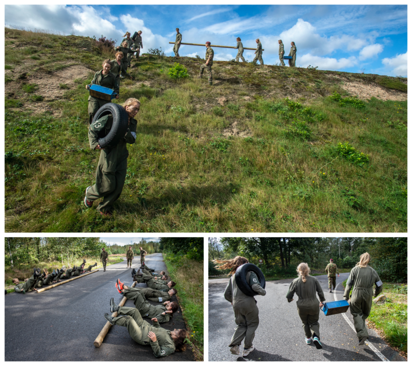 Denk aan de hardlooptest (2.700 meter in 12 minuten), til- en draagproeven, kaart- en kompaslezen, wachtlopen, terreinwerk, ligsleuven graven, kennismaken met slaapdeprivatie (slaaponthouding) en een intro-wapenles. Ellermeijer: “Ze hebben met rantsoenen in het veld gegeten en geslapen onder een poncho. Waarbij het één avond hoosde van de regen. Dat hoort erbij.”
