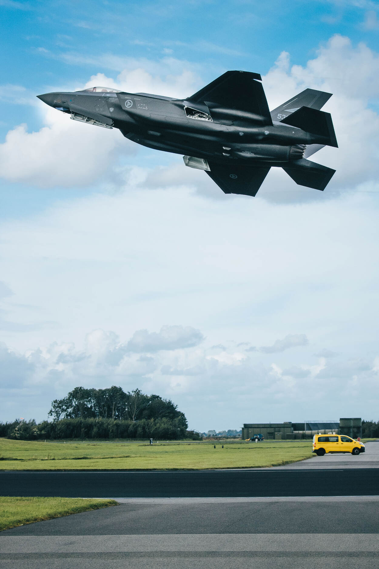 Sergeant Jan Dijkstra legde deze F-35 op Vliegbasis Leeuwarden vast, die meedeed aan de recent gehouden Weapons Instructor Course. Deze complexe training leidt vliegers op tot wapeninstructeur, waarna ze expert zijn in hoe je de sensoren en wapensystemen van een F-35 inzet.