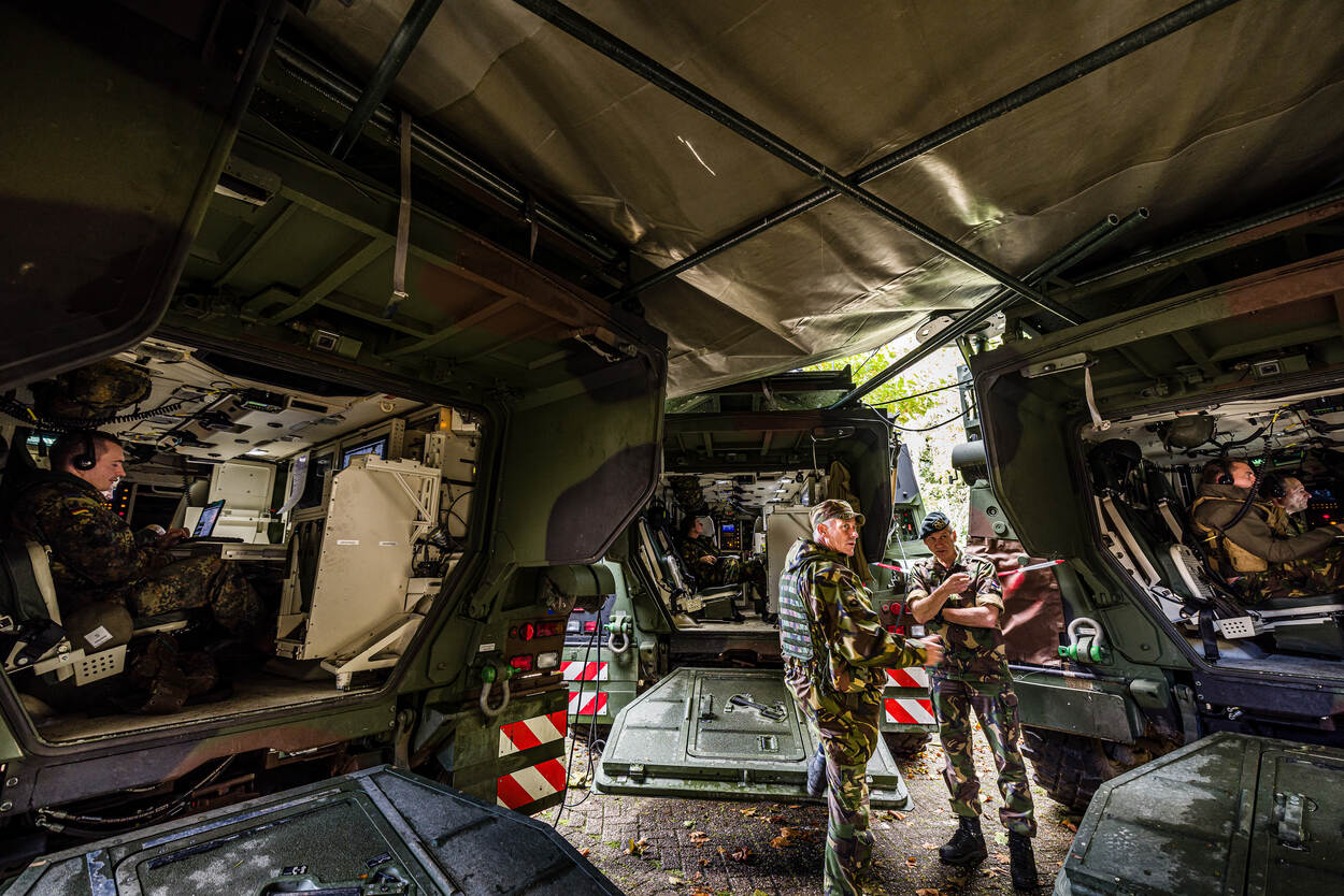 Op de Bernardkazerne in Amersfoort vond onlangs een test van het project Forward Command Post plaats. Daarbij draaide het vooral om snelheid en mobiliteit. Fotograaf is Paul Tolenaar.