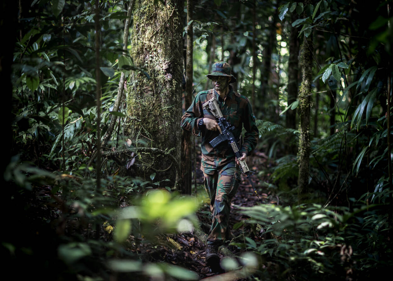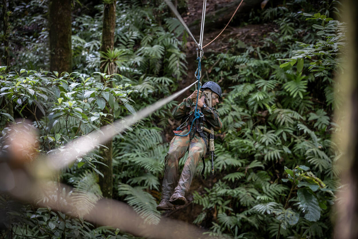 De mariniers en militairen van 13 Infanteriebataljon Luchtmobiel uit Assen leerden samen met hun Franse collega’s hoe zij zich het beste kunnen bewegen in bergachtig junglegebied. Over land, door het water, of door een combinatie van beide: modder. De Nederlanders werden hiervoor in hetzelfde jungletenue gestoken als de Fransen. De training is onderdeel van een jaarlijkse kennisuitwisseling tussen Nederland en Frankrijk. Het ene jaar organiseren de Fransen de training, het volgende jaar is het aan de Nederlandse mariniers in de West om iets uitdagends op poten te zetten.
