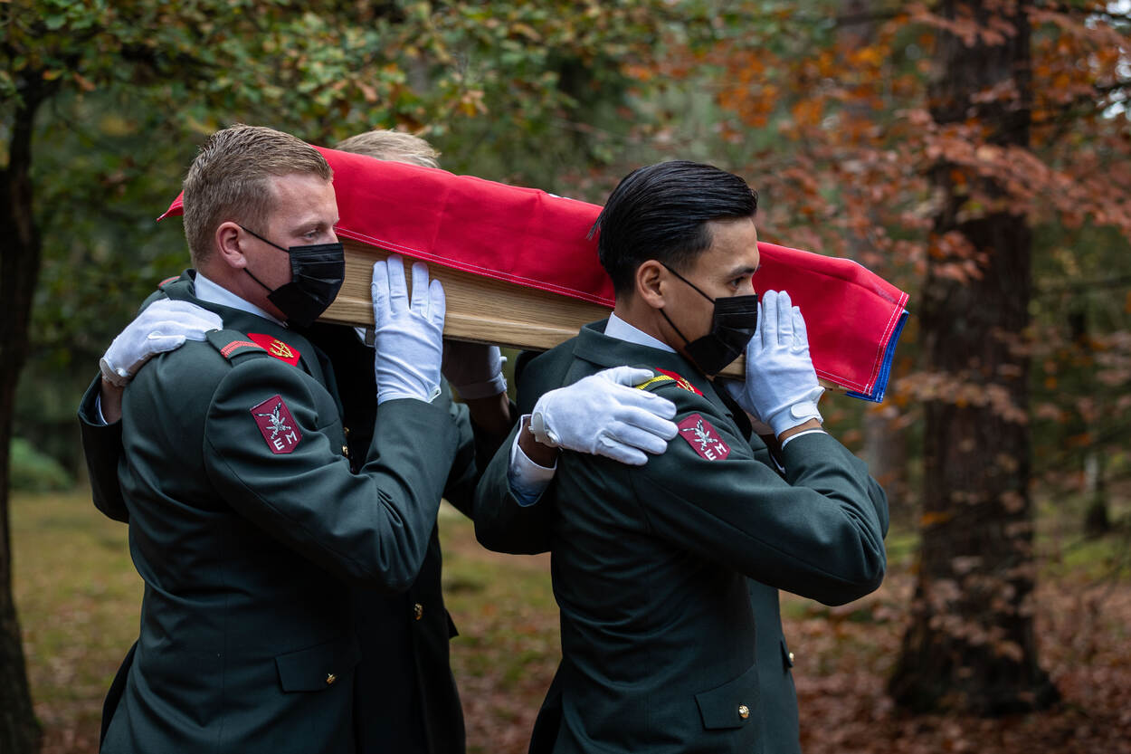 Het is de eerste keer sinds de uitbraak van het coronavirus dat er een herbegrafenis plaatst heeft. “Door de omstandigheden heeft het stilgelegen, maar we hopen na de winter een inhaalslag te maken”, legt majoor Frank Torrombacco van Ceremonie en Protocol (C&P) van de landmacht uit.